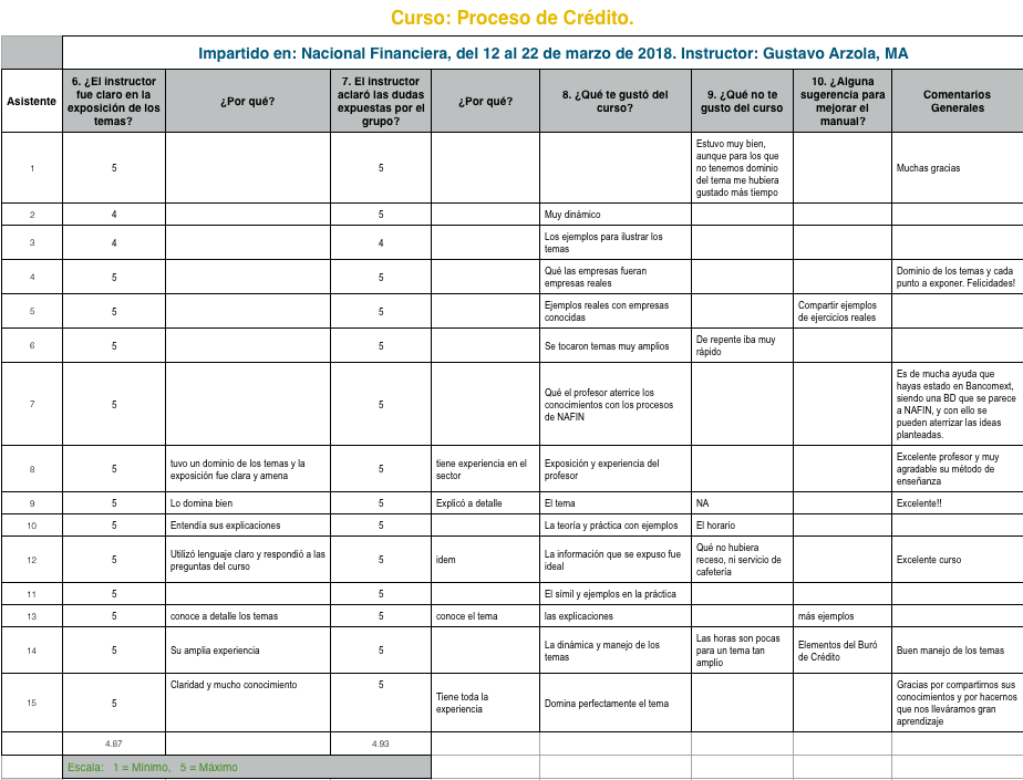 Mira los comentarios del curso impartido en Nacional Financiera